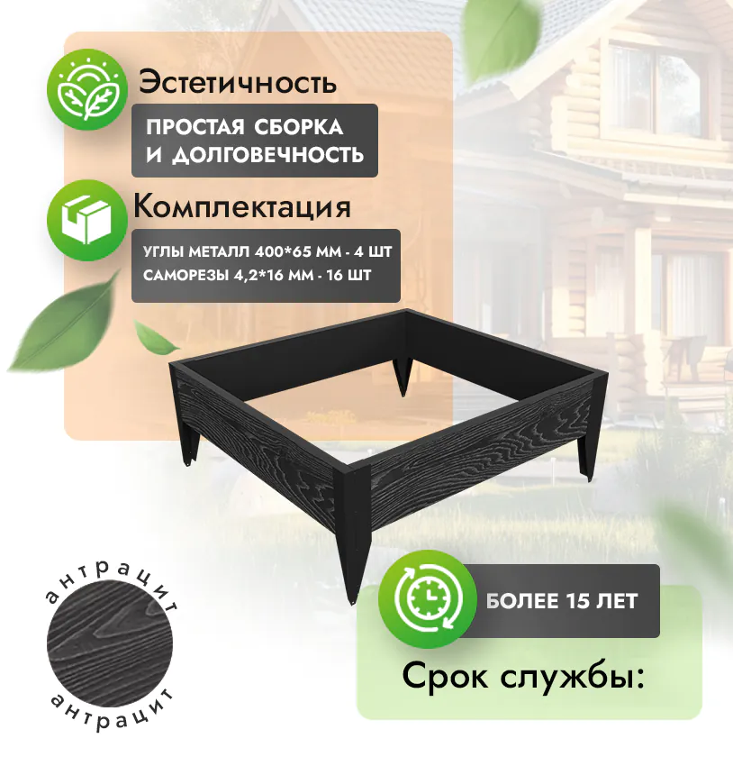 Наши грядки и клумбы из ДПК выдерживают до 3318 кг/м2, влагостойкие, не требуют ухода.