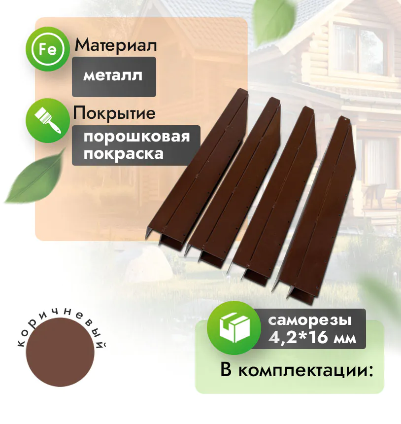 Угол металлический для клумбы из ДПК 40 см (компл. 4 шт)